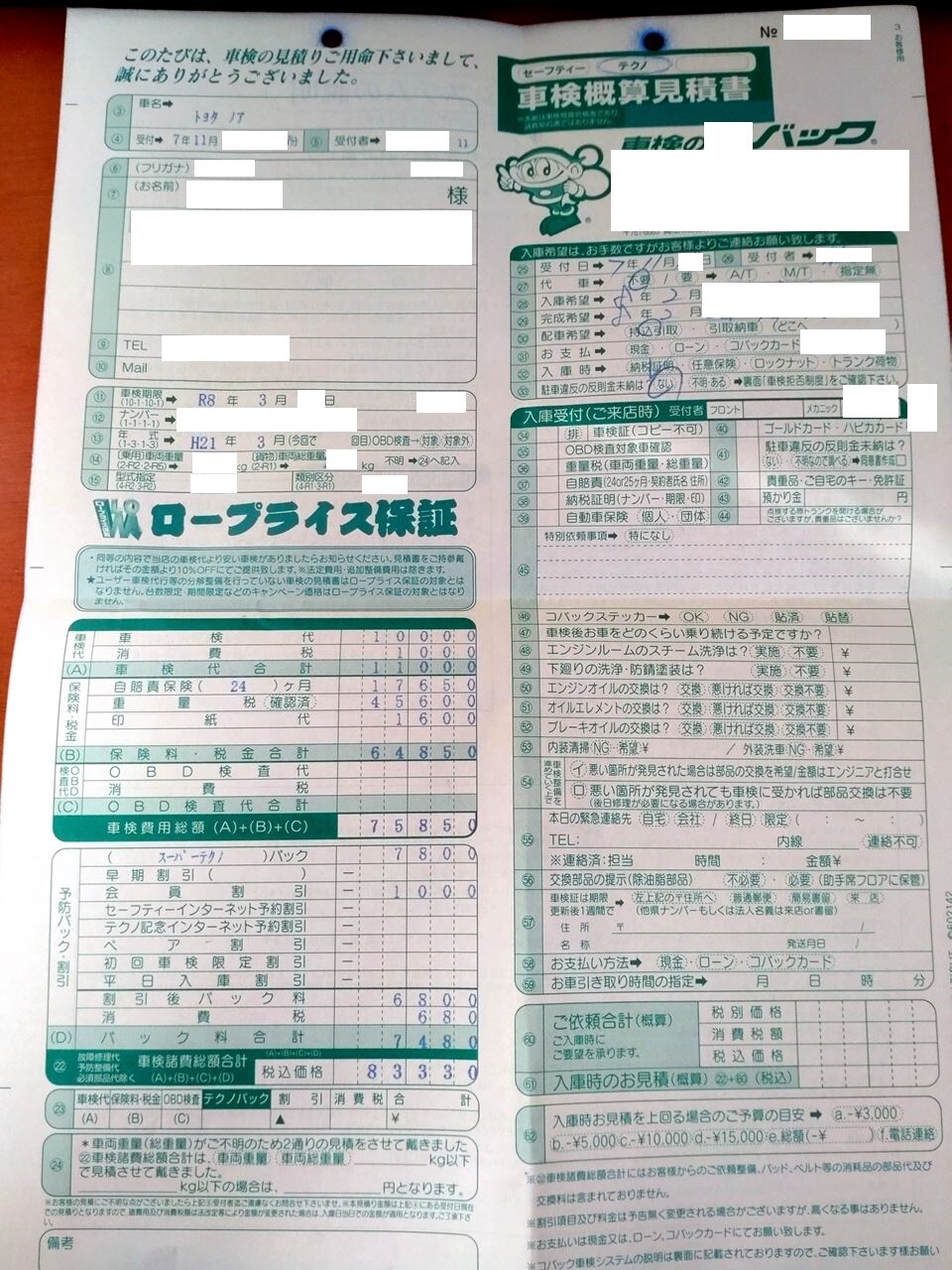 続いて今まで車検に出していた〇バックさんに出向き、同様に見積依頼をしました。