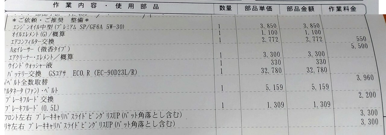 総計の154,490円は、オプションの「ご依頼・ご推奨 整備」が含まれた費用でした。