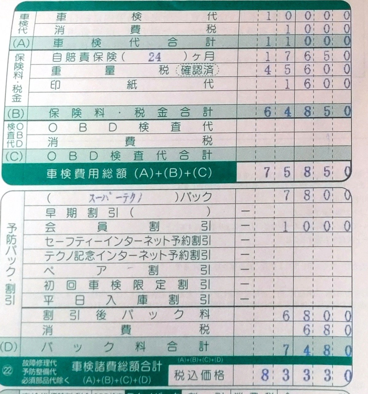 いつも「車検の〇バック」さんで車検をしてもらっていますが、今回は2社に相見積もりをしてもらって検討することにしました。