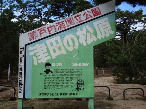 名前は、松原を吹き抜ける風の琴を奏でるような音に由来するという。一般的には津田の松原と呼ばれる。松原を抜けた先の浜辺は美しく、夏は海水浴客を多く集める。