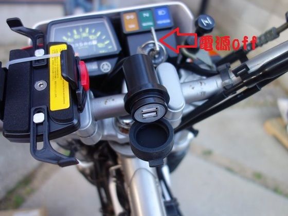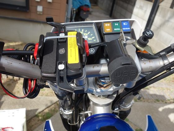 1.まずは、USB電源とスマホホルダーをハンドルに設置。