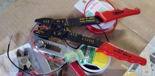ケーブルの被覆をはいで、ギボシ端子を取り付けます。(ここからしばらくの作業の写真を撮り忘れました (^^;