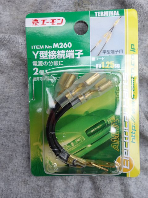 (仕様部品:エーモン Y型接続端子 平型端子用 2個入 M260 ・・1個のみ使用)