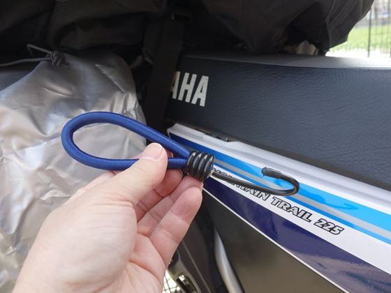 リアバッグの上には、レインカバーをかけるので、ツーリングネットをひっかけるリアバッグのDリングは使えない。