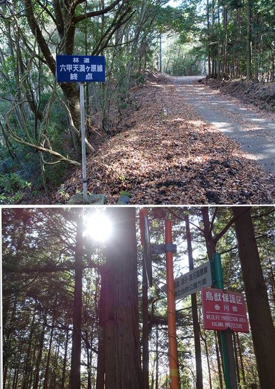 林道六甲天満ケ原展望台をあとにして、山深い道をさらに先に進みます。