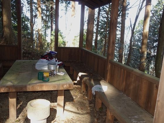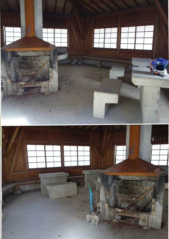 ここで今日の外メシとも思いましたが、ちょっと暗いし、戸を締めきっていて誰も使っ