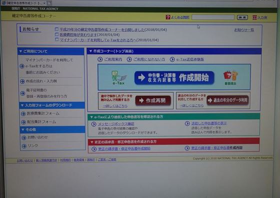 この国税庁の確定申告書作成コーナー(システム)は、過去何度か利用したことがありますが、今までは印刷して税務署に持っていっていました。