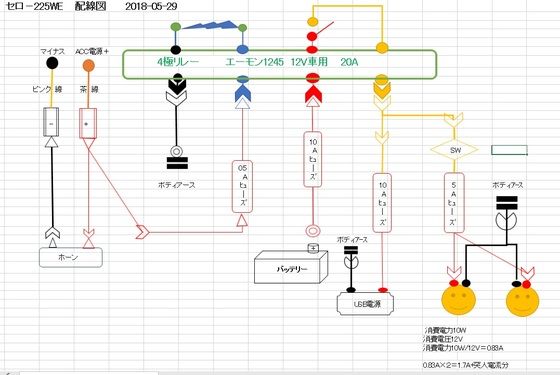 +電源からリレーに入るところに、ヒューズをかまし忘れていましたよ
