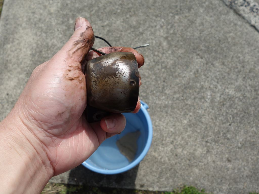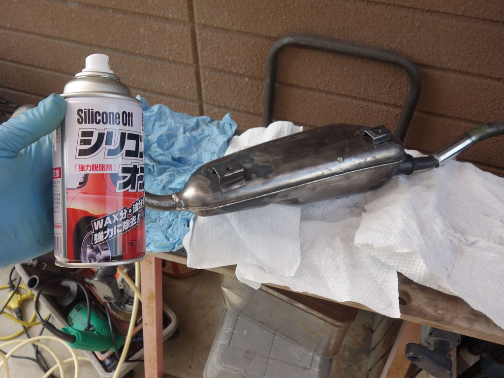 これが、どうやっても マフラーから抜けず、あきらめてそのまま作業しました(^^;
