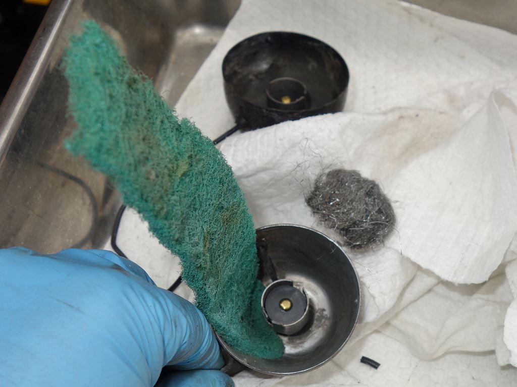 あらかたの錆を落としてから、スコッチブライトとボンスターでさらに錆落とし。