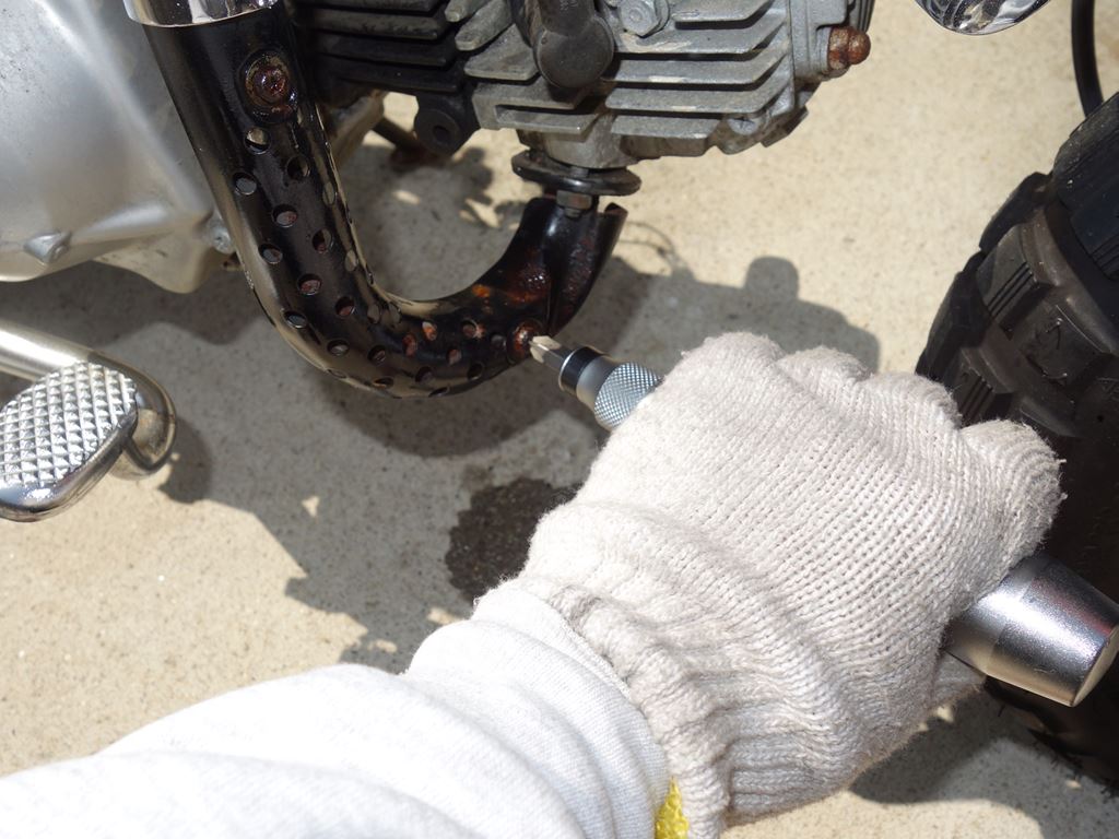 エキゾーストパイプカバーをとめてる+ネジが錆び錆び・・・。