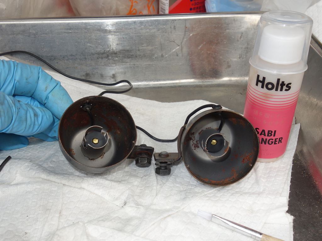 つい最近、錆びたホーンやヘッドライトリフレクターの裏面、ウインカーの再塗装等々をやっていましたが、止まらなくなってきました(^^;