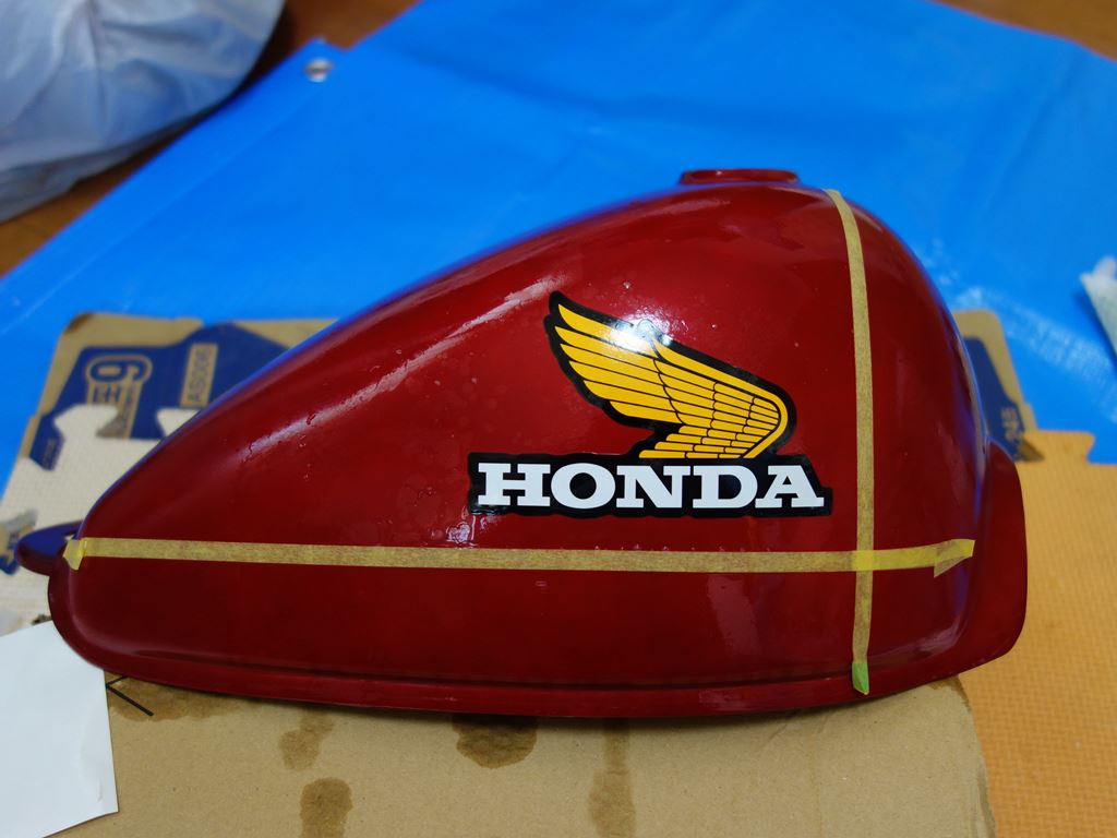 いよいよ再塗装したタンクの仕上げにとりかかりまっせ。