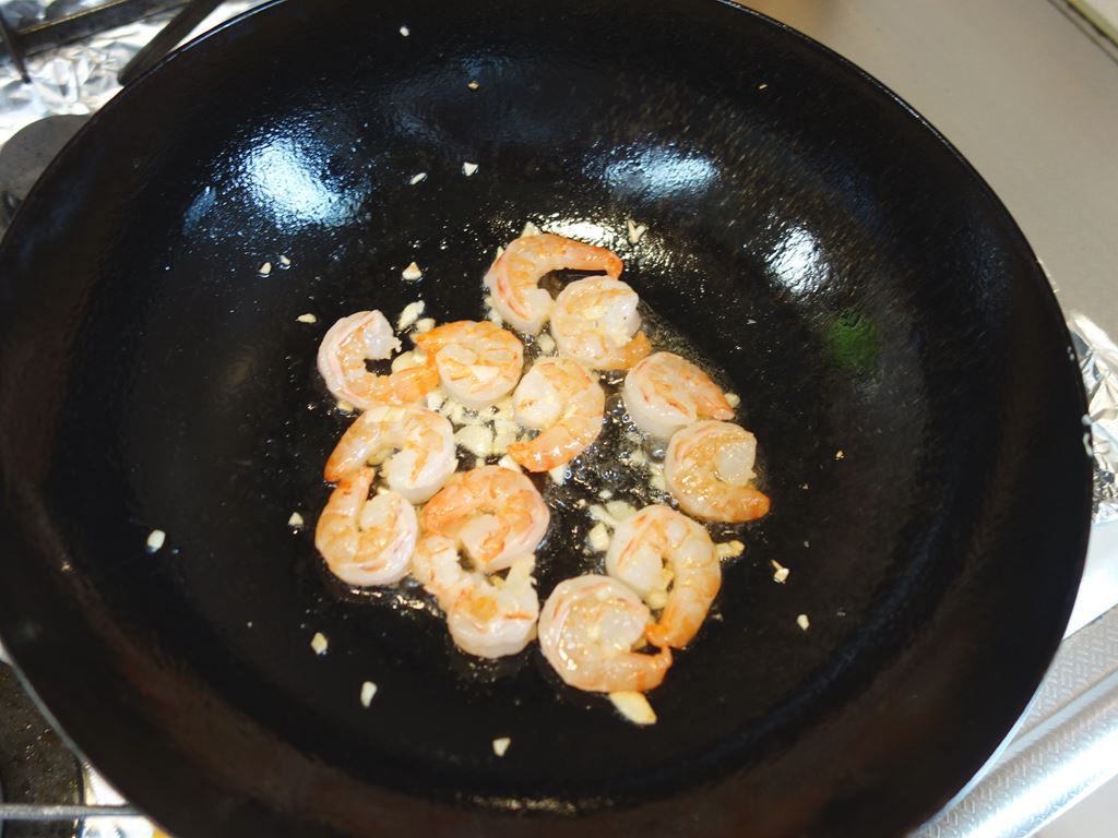 フライパンでゆで汁を軽く煮詰めます。 出来上がった時点で、煮詰めたゆで汁がある程度残るぐらいが私は好き