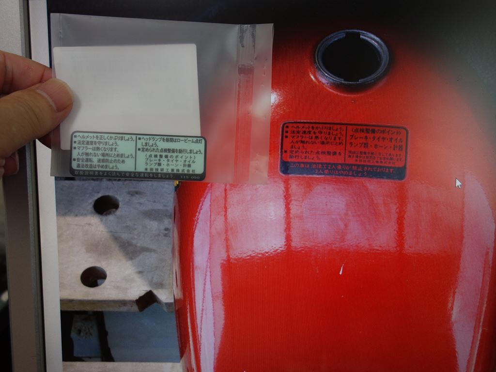 ウイングマークもコーションラベルも、この上から2液ウレタンクリア塗装して、マークやラベルが塗料に侵される可能性と、クリアがうまくのらない可能性があったので、クリア塗装の上から貼りつけました。