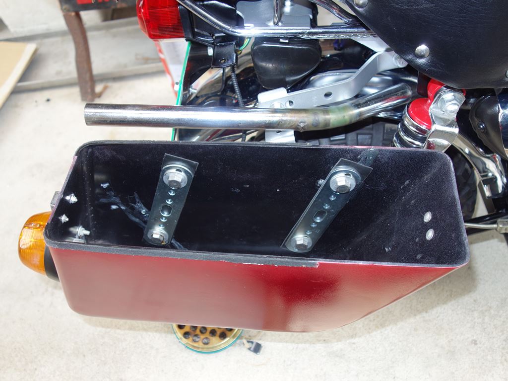 ちゅうことで、サイドバッグ内側にもステーをかまして、内側と外側両方からステーで挟むようにしました。