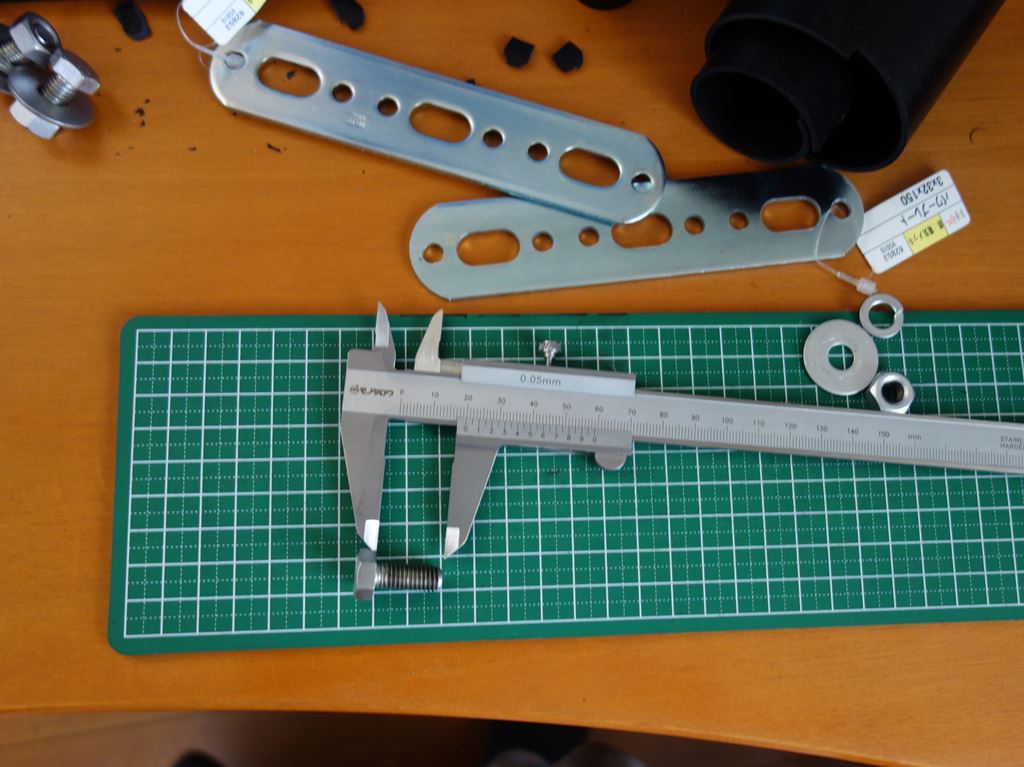 ゴム板2枚と内側ステーが追加になるので、既存のM8ボルトでは長さが足りなくなりまんねん。