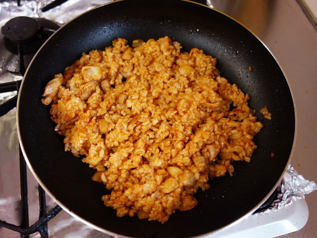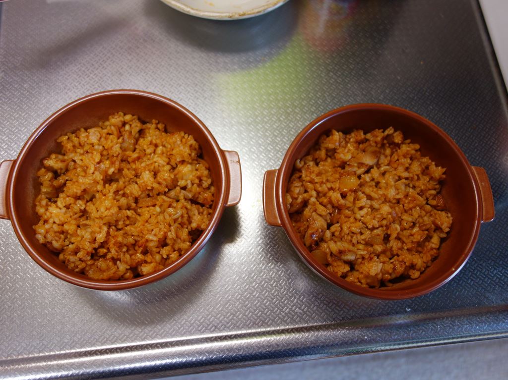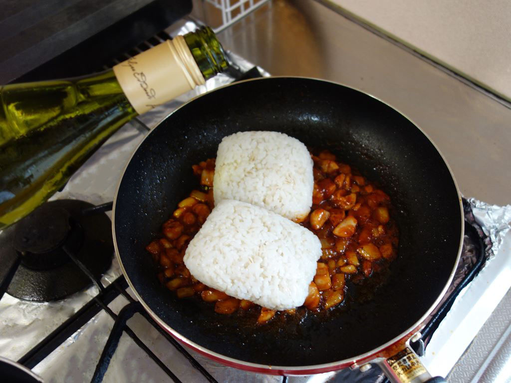 レンジで解凍・温めたご飯をドサッ
