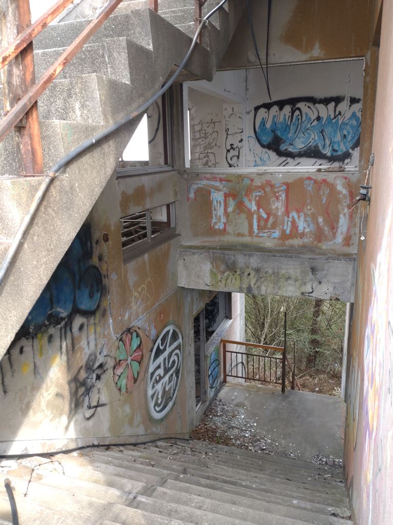 廃墟となり、いたるところにアンポンタン野郎の落書きが!!(゚皿゚メ)