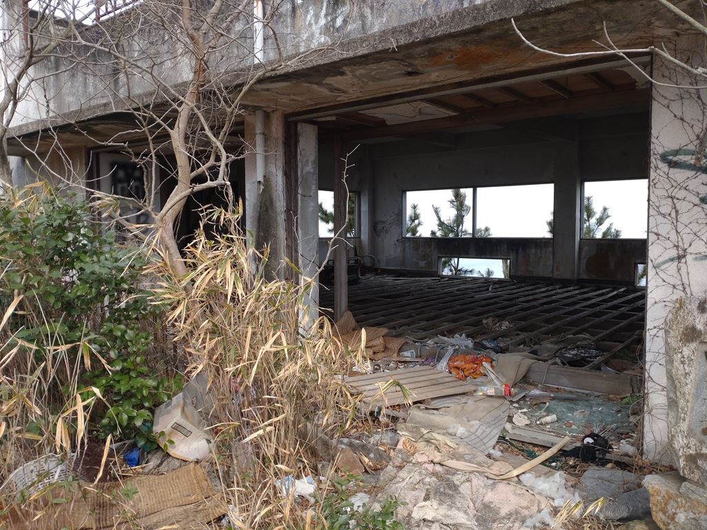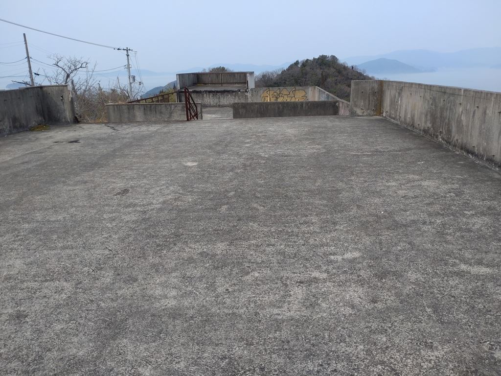 いつ崩れ落ちるかわからない階段をビクビクしながら渡り、建物の屋上へ。