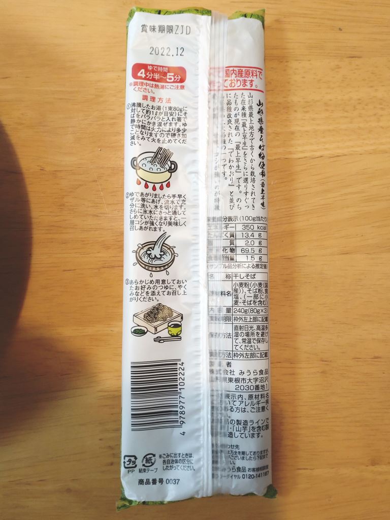 最上早生蔵王蕎麦(240g 税抜¥288)・・みうら食品(山形県東根市)