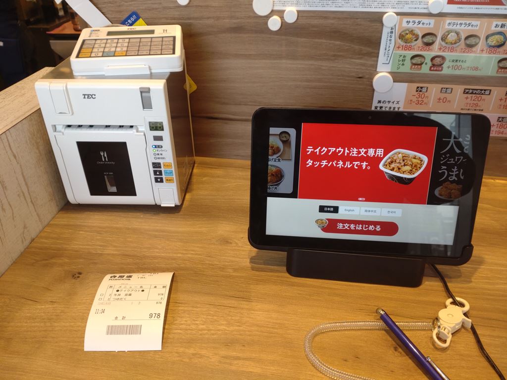 タッチパネルのメニューから牛丼並を探すだけでも、時間がかかちゃうし・・。