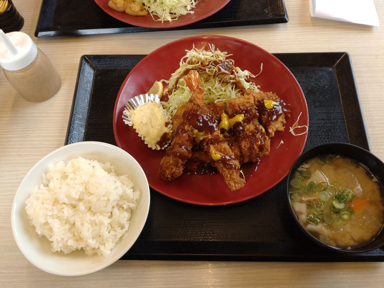 <海老・ロースカツ定食 890円(税込979円)>を注文。
