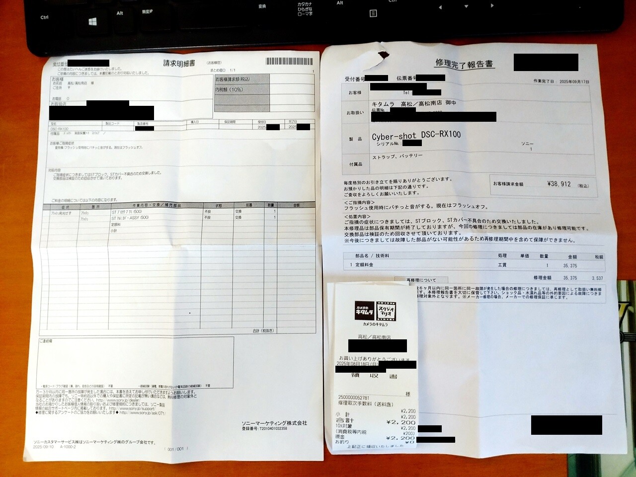 キタムラさんの取次手数料¥2,200-。 修理費用¥38,912-。 合計¥41,112-な~~り。