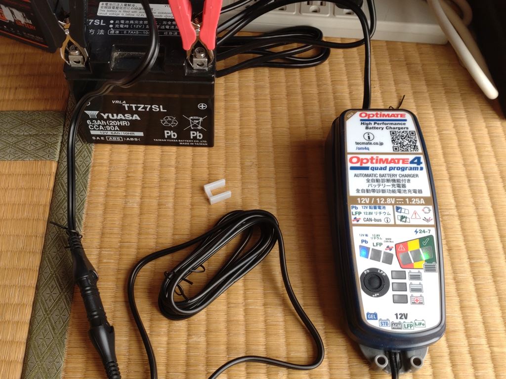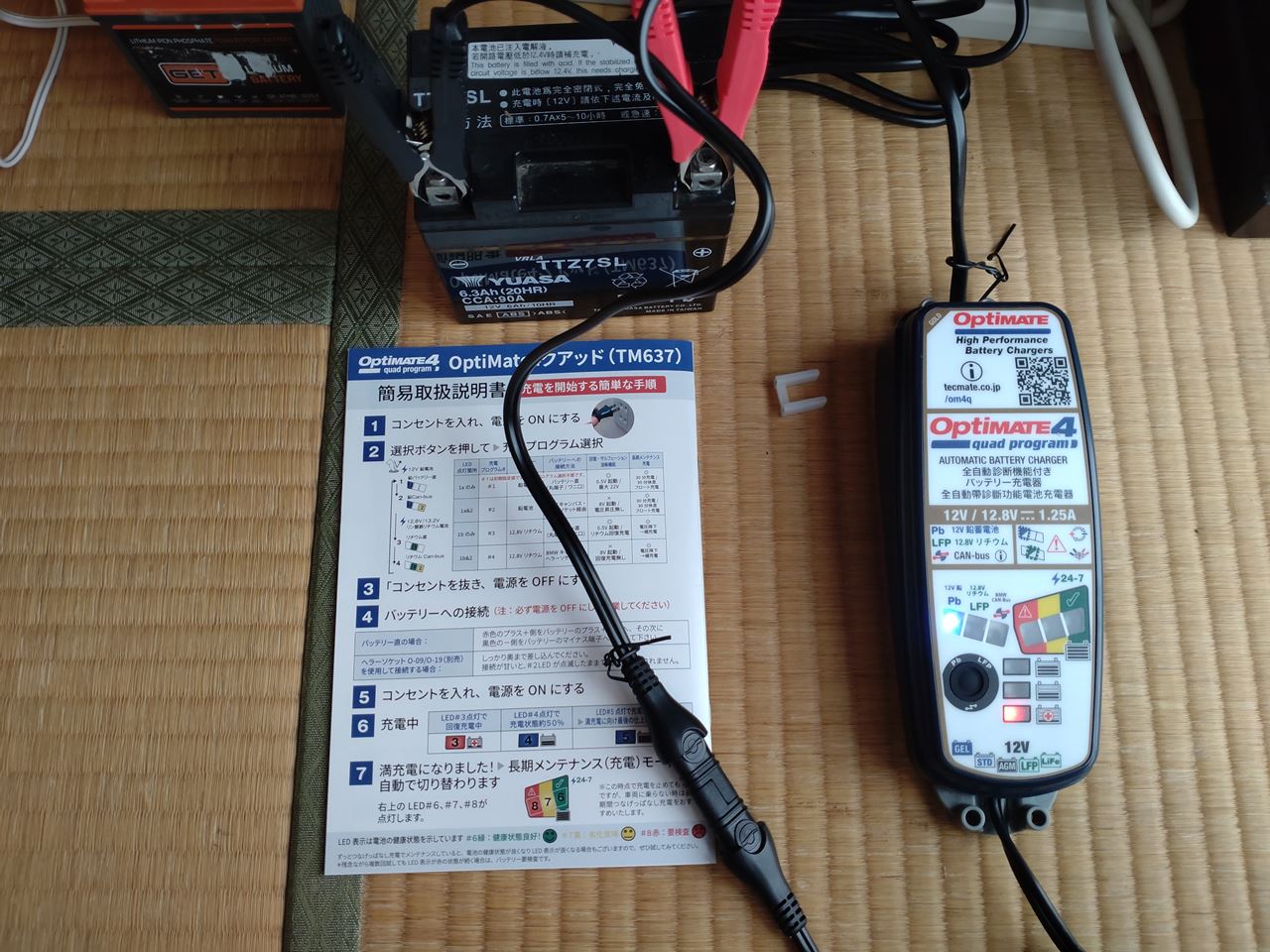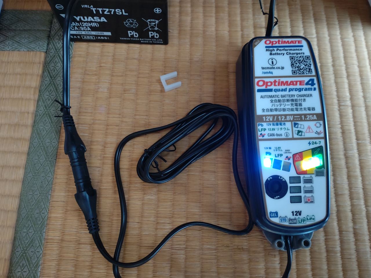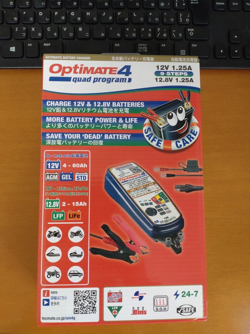 使わないのももったいないので、セロ子ちゃんの放電気味の鉛バッテリーを、このOptimate4クアッドで補充電しました。(・∀・)