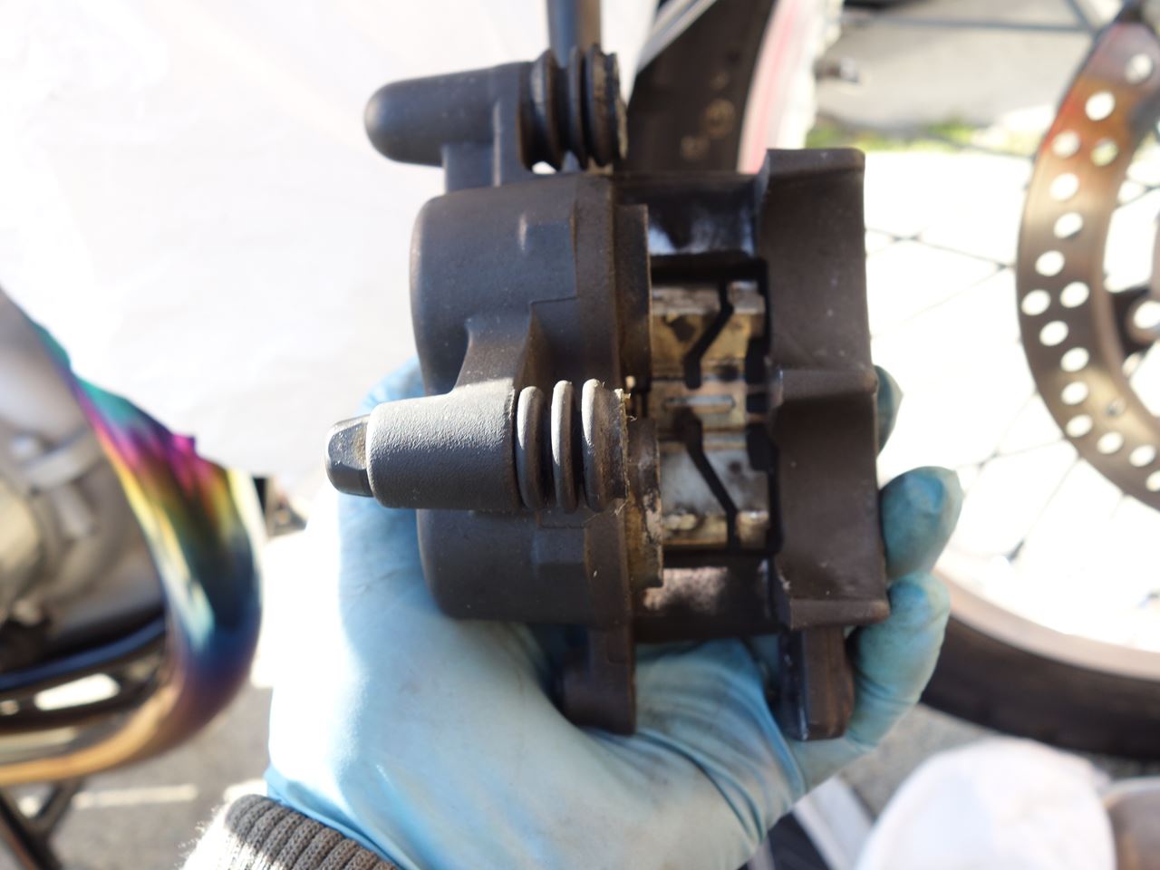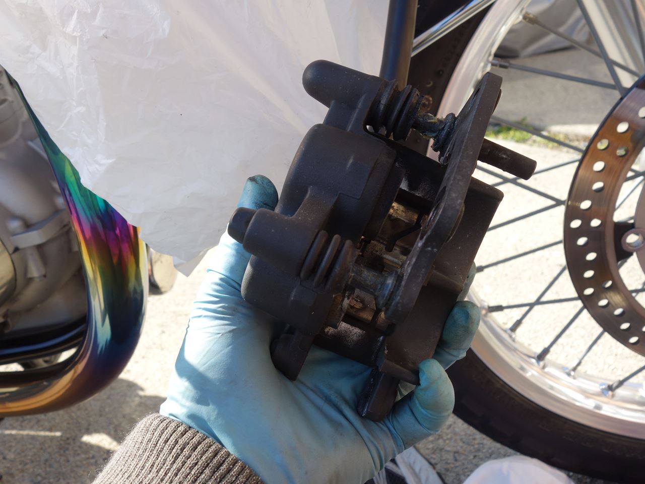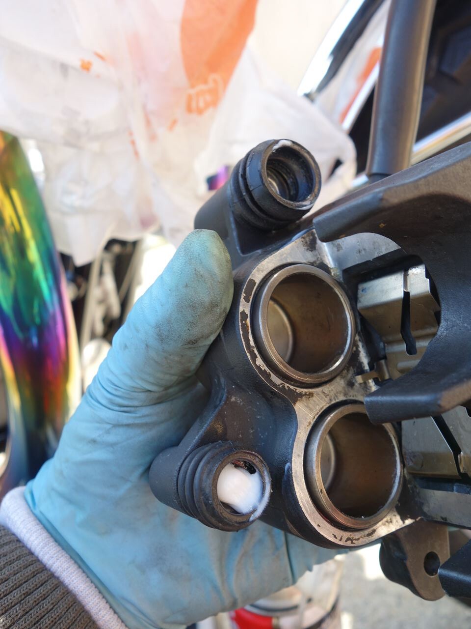 キャリパーを組み付け。 ホルダーシャフトを動かし馴染ませておきます。