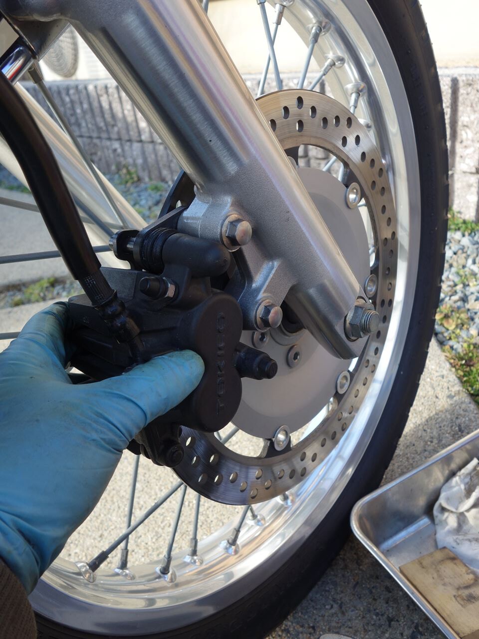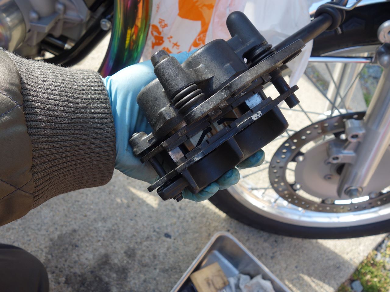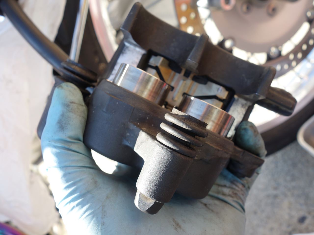 キャリパーを組み付け。 ホルダーシャフトを動かし馴染ませておきます。