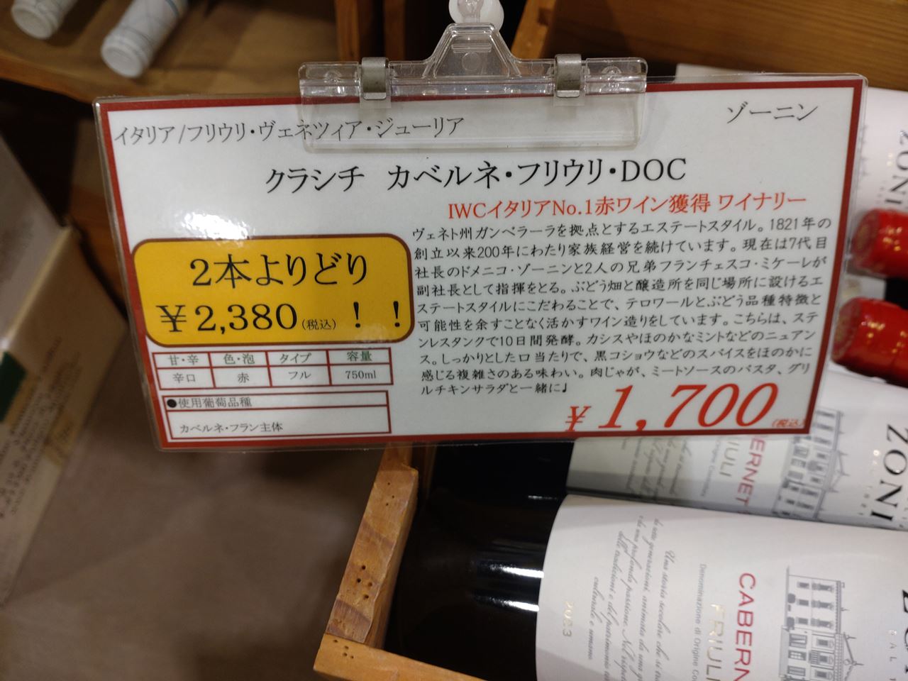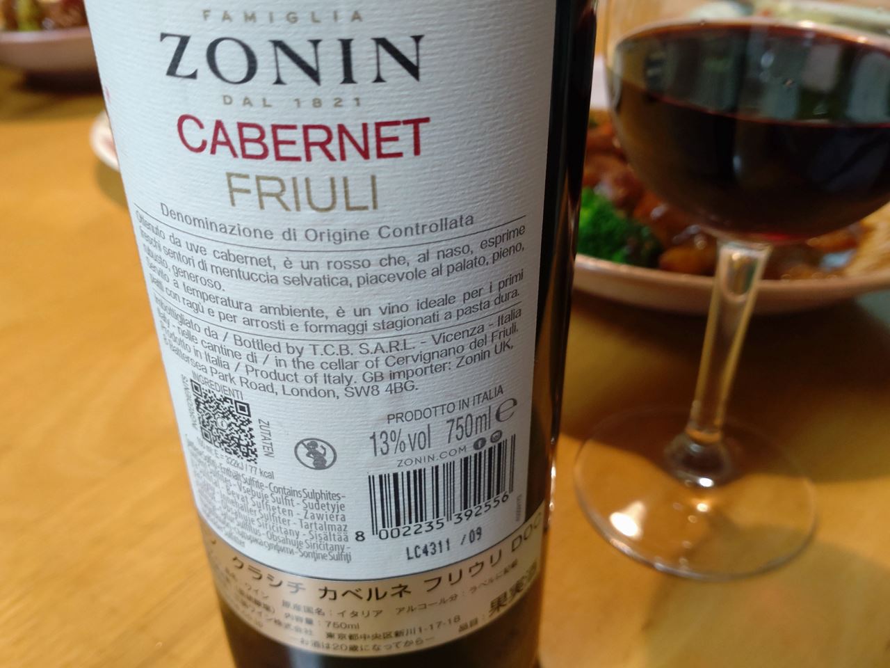 実は、この「ゾーニン クラシチカベルネ・フリウリ・DOC」。