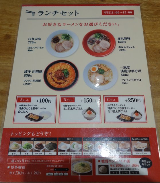 昔は福岡行くたびに、一風堂さんにおじゃましていましたが、最近は他の店に浮気ばかりしていたので、ひさしぶりの訪問となりました。