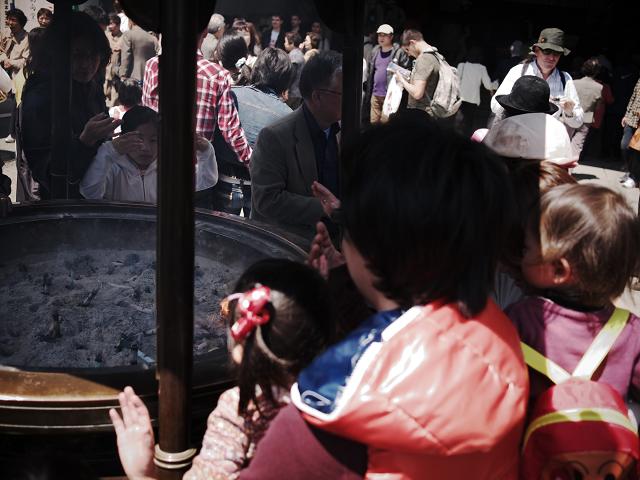 人、人、人・・を掻き分けながら雷門、仲見世通りをすすみ、浅草寺へ。