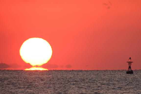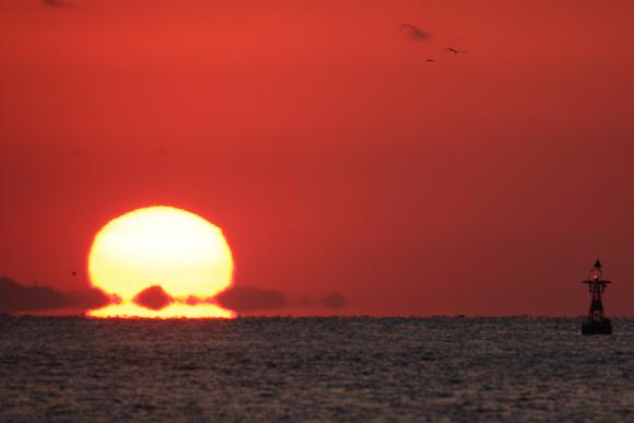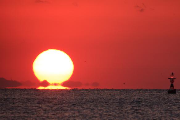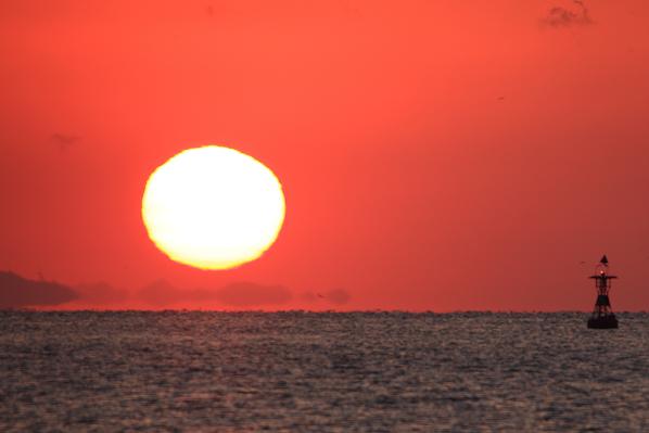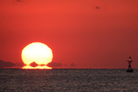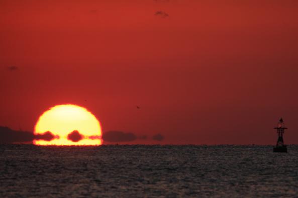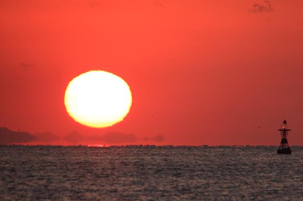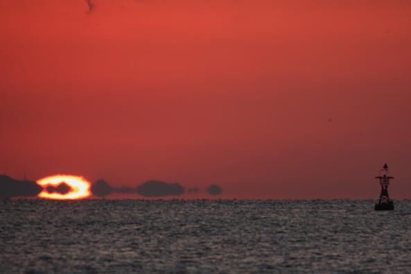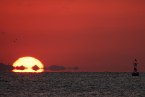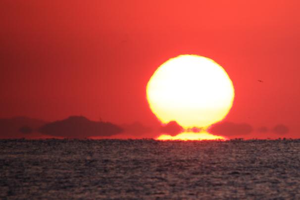 お日様も海面から半分以上、顔をのぞかしてきました。