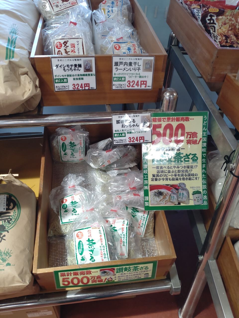 いつも買う「茶ざる」と「瀬戸内煮干しラーメン」をお土産に。