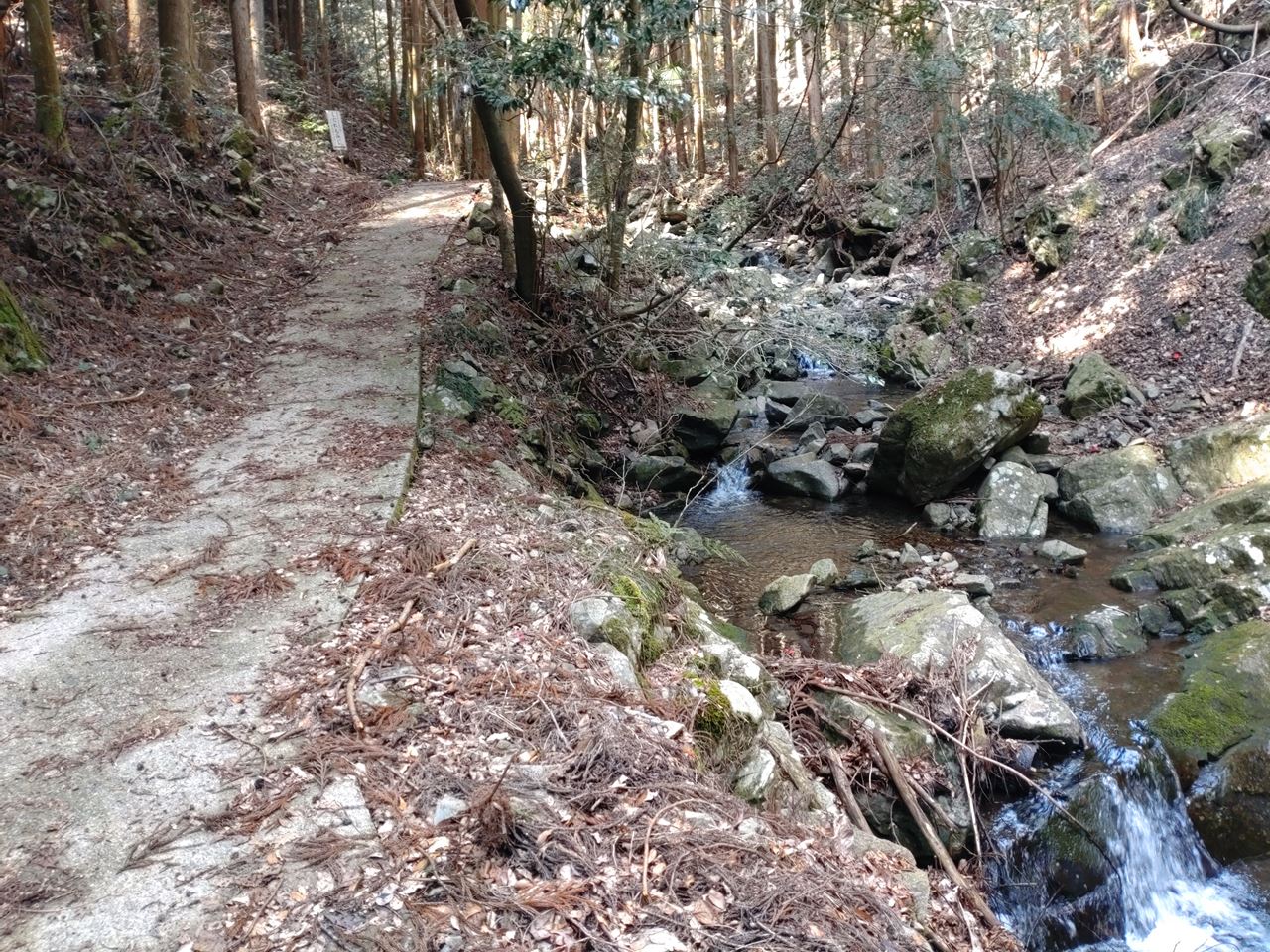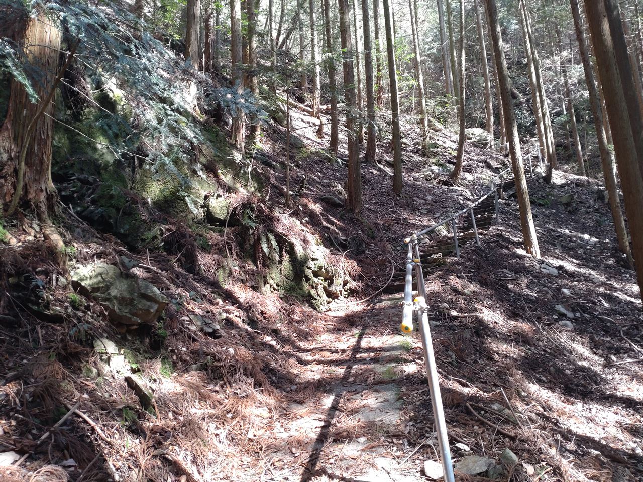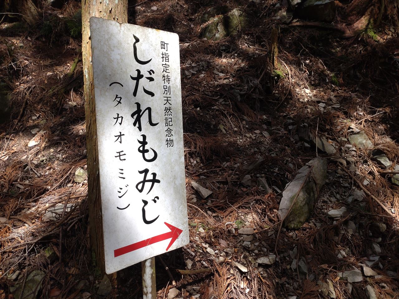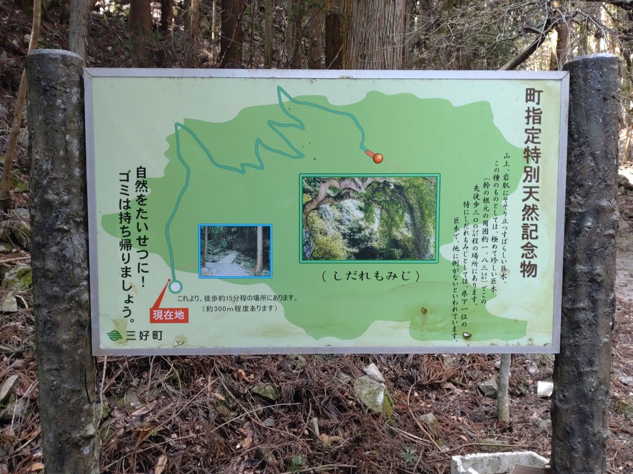 さて、この道路沿いにいくつも「特別天然記念物 しだれもみじ」の案内板があったので、山にのぼって進んでみました。