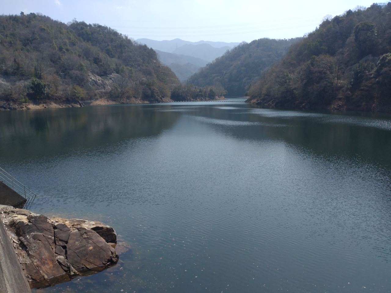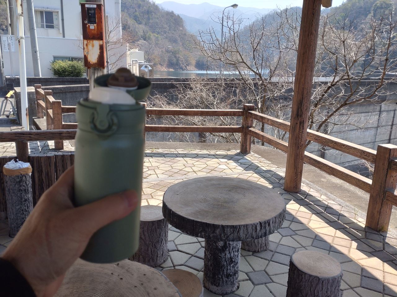 ダム湖(野口ダム)の東屋で、コーヒータイム。