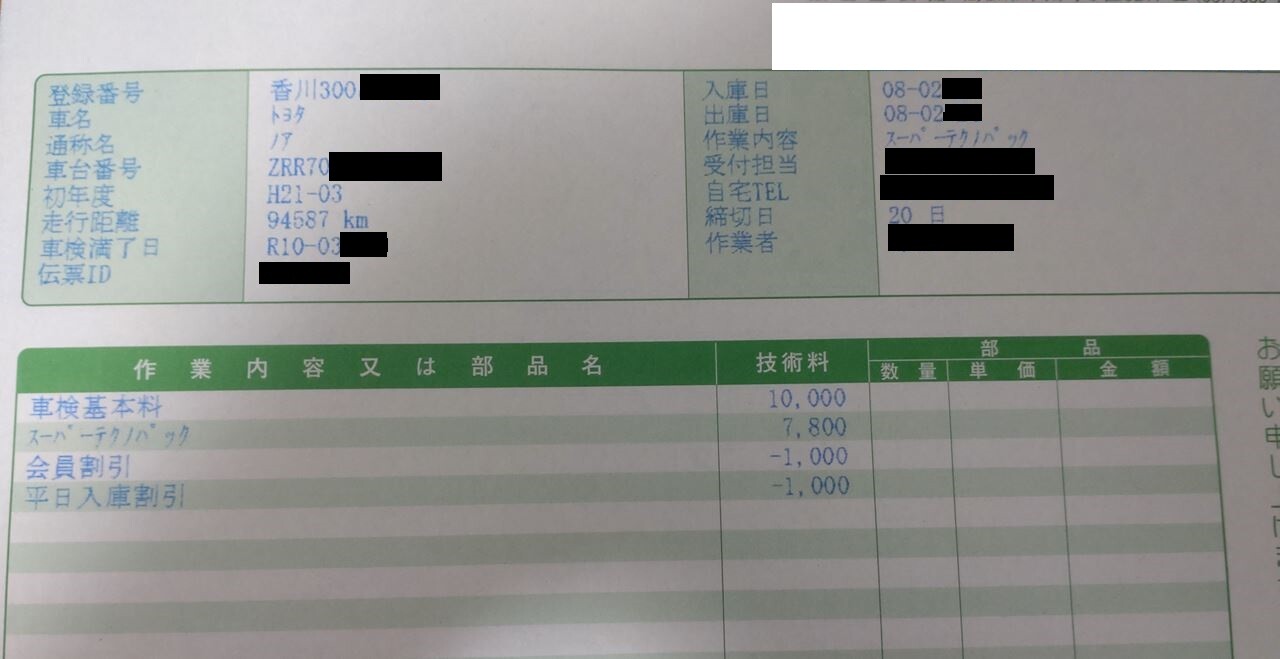 2月におえたノアの車検。