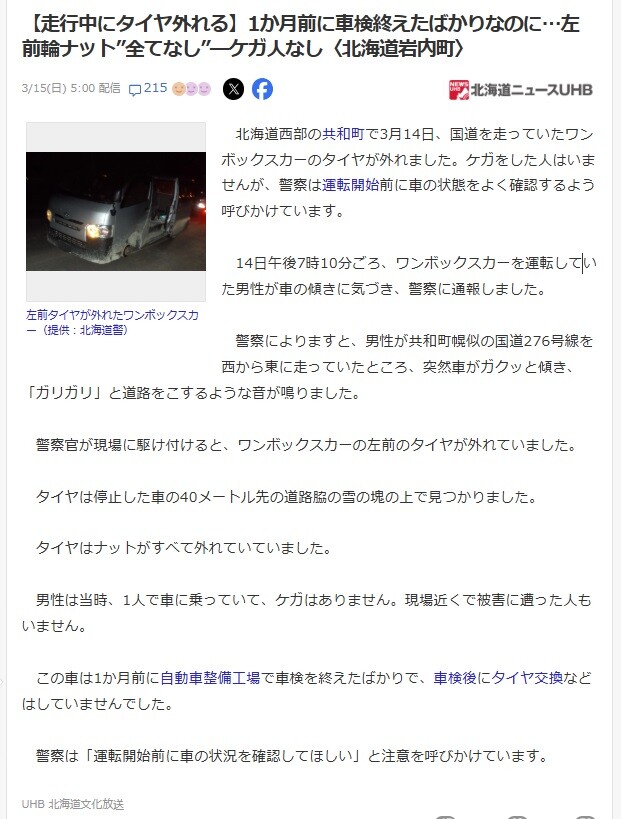 増し締めは大事ですね。 まあ、こんなことがあるから、車屋さんが 気持ちオーバートルク気味で締めるのは理解できます。(゜ー゜)(。_。)ウンウン
