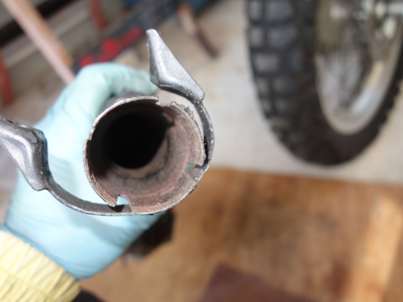 マフラー側がしまっていてこのままだとガスケットが挿入できなかったので、力業で開きました。(^^;