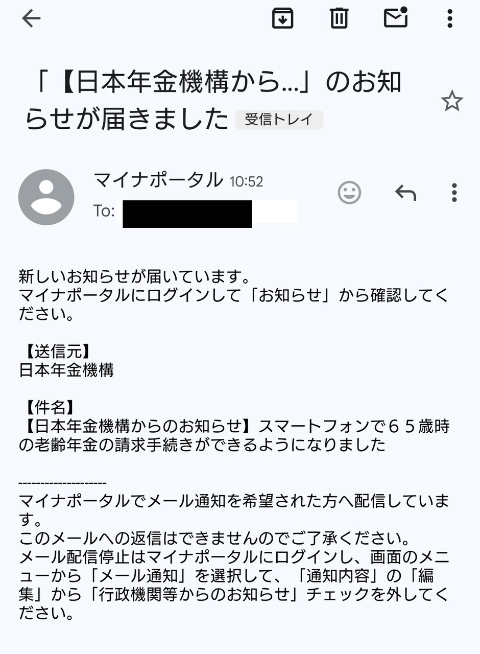 メールで「日本年金機構からのお知らせ」が届きました。