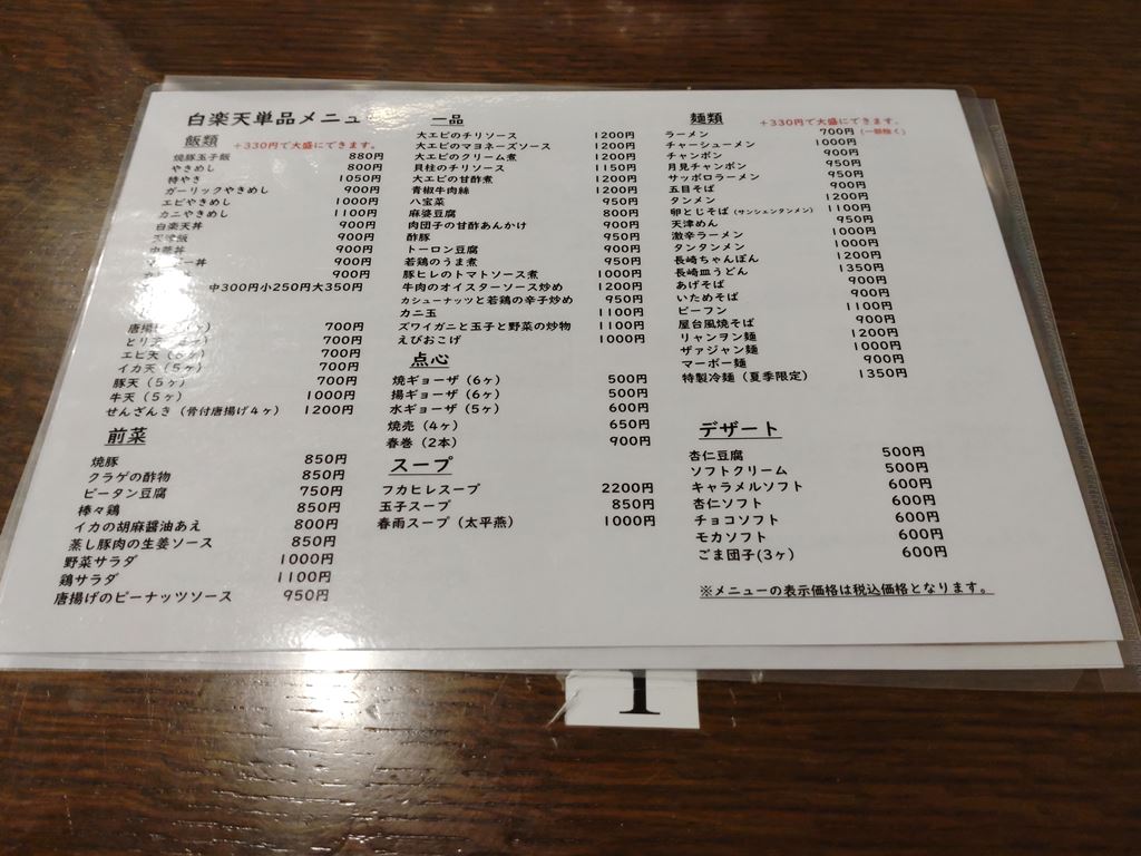 今回は、ホテルからも徒歩圏内のもう一つの有名店、「白楽天」さんにおじゃましました。