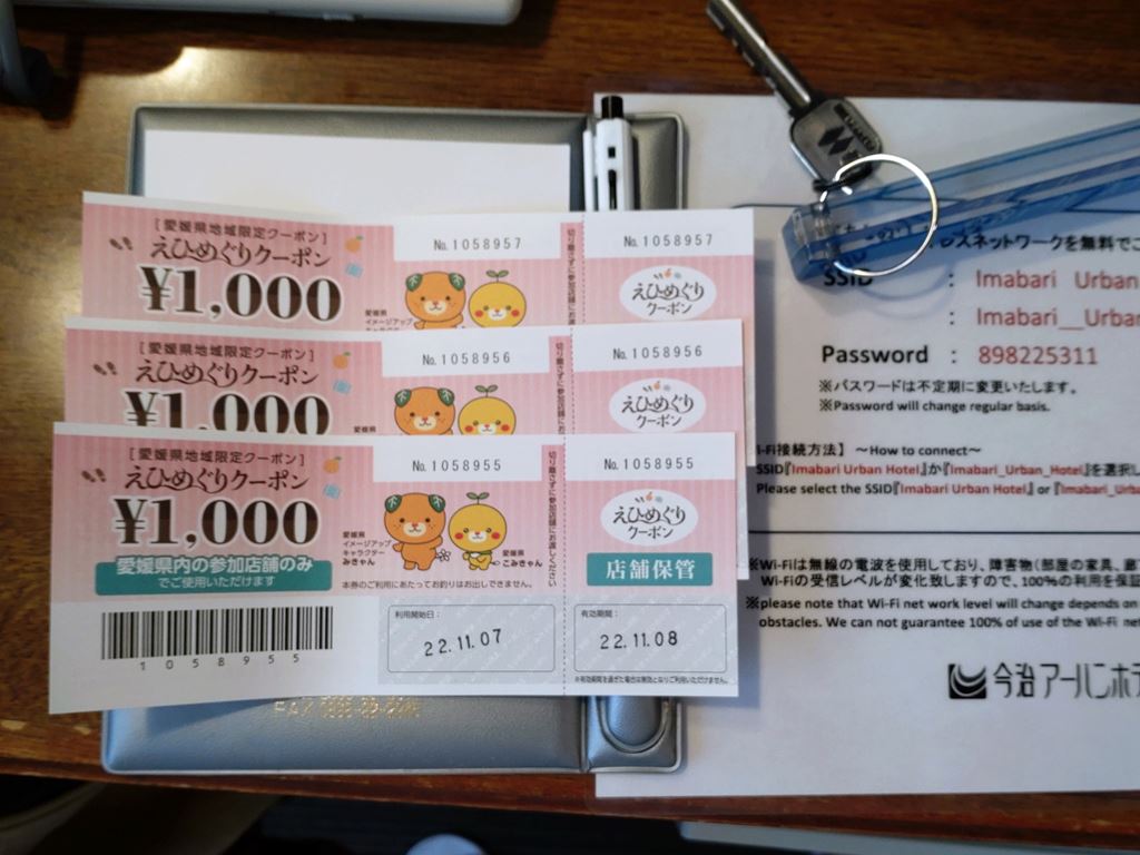 ここから 事前予約していた今治駅前のビジネスホテルにチェックイン!